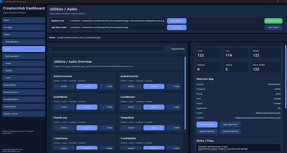 Creatorz+ Tools Suite is a collection of powerful, locally-run apps built for creators, developers, and digital workflows. From audio and image processing to video editing and content creation, each tool is designed for speed, simplicity, and full control — with no uploads, no limits, and no subscriptions. Whether you're building content, organizing assets, or experimenting with new ideas, these tools are made to help you move faster and create without friction.…